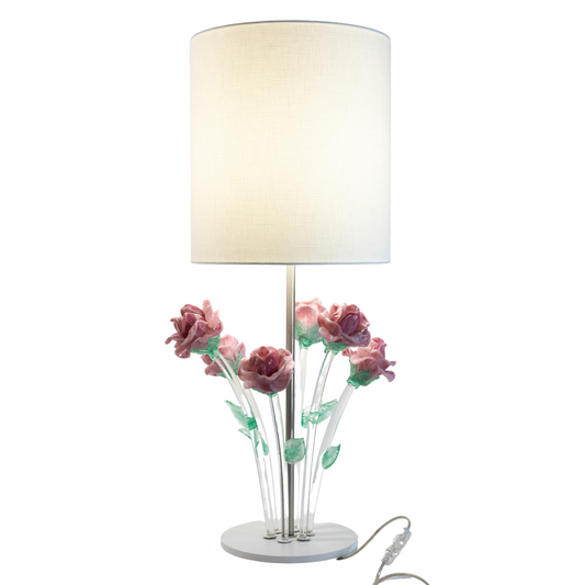 FLOR Lampe de Table avec Roses en Verre de Murano